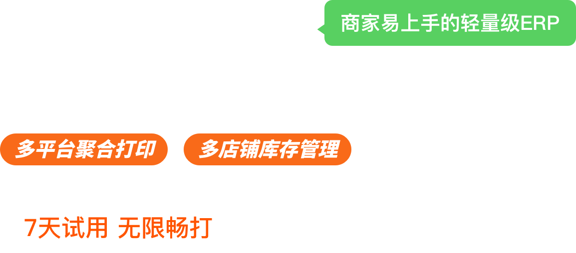 以多平臺多店鋪訂單管理為核心,集打單發貨、商品、庫存、采購、售后于一體,中小商家易上手的輕量級ERP